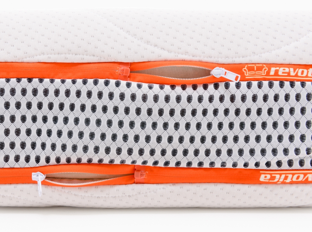 Husă de saltea din material la alegere, confecționată cu 2 fermoare pe toată marginea și cu inserție laterală din plasă MESH.